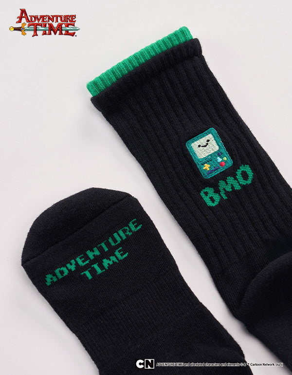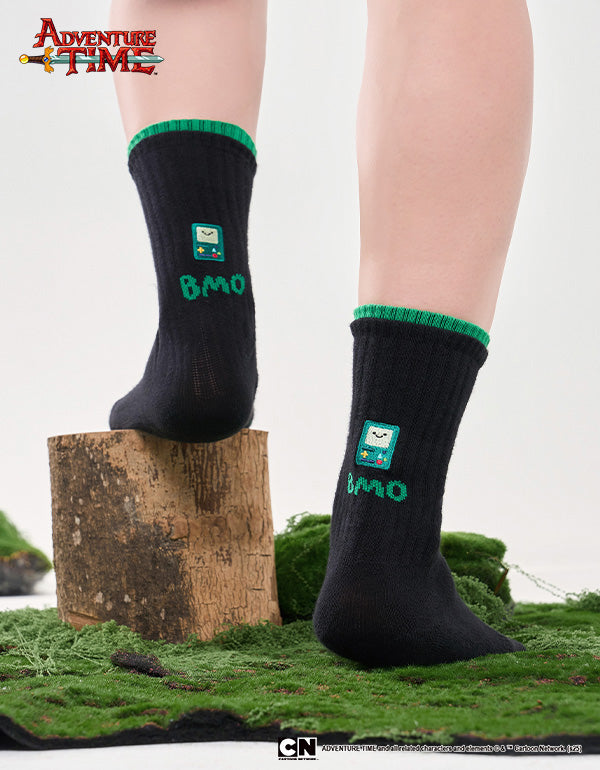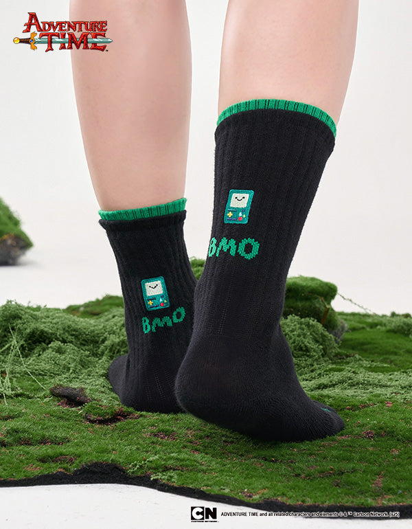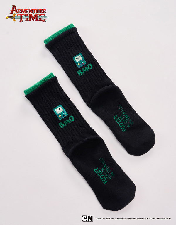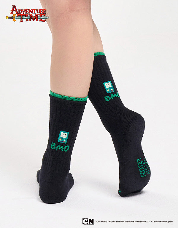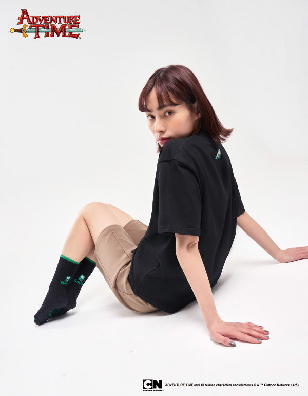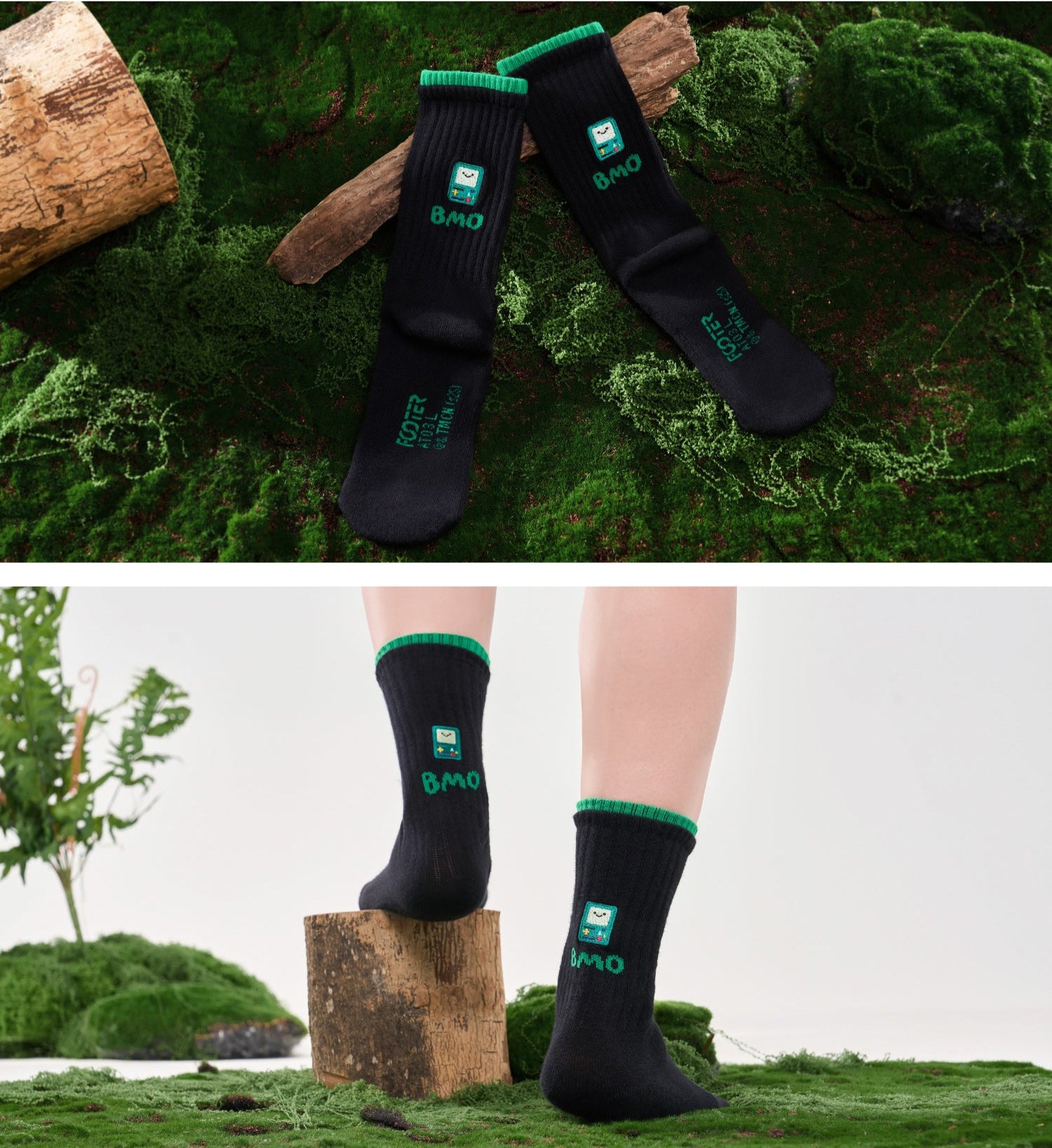 Transform into your smiling little companion, always ready to join the adventure squad. With a black base and a pop of BMO Green at the cuffs, these socks are subtly playful yet full of charm. Overflowing with cuteness, they’ll have everyone recognizing you in an instant!