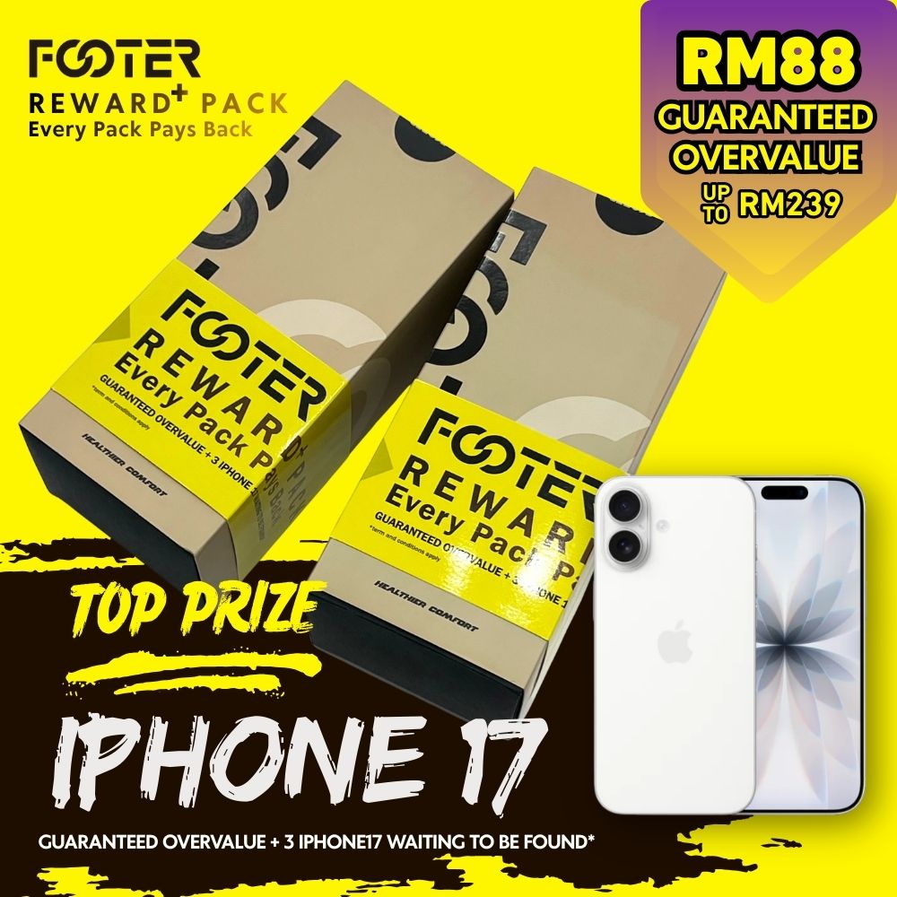 Discover the FOOTER Reward+ Pack — the most exciting 🎁 mystery box in Malaysia for anyone who loves surprises, quality socks, and incredible value. Priced at just RM88, every pack is guaranteed to be worth MORE than what you pay, with product value reaching up to RM239.